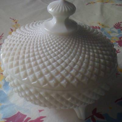 Westmoreland Glass Milk English Hobnail Covered Dish