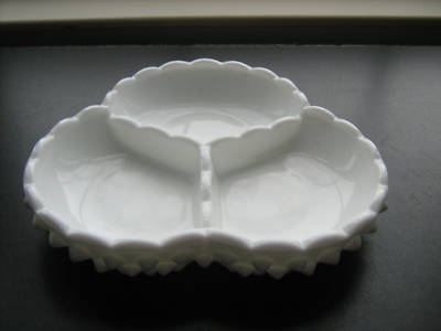VINTAGE FENTON White Milk Glass Hobnail 3-Part Dish EXC