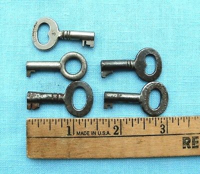 5 antique all different steamer trunk keys