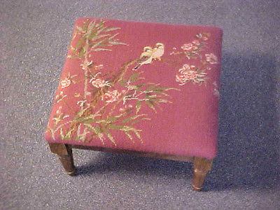 Title (ebay affiliate link): VINTAGE WOOD FOOT STOOL WITH NEEDLEPOINT TOP SHOWING BIRDS-FLOWERS