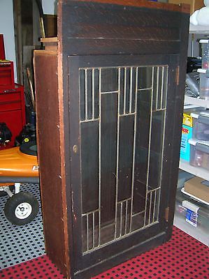 Antique OAK salvaged BUILT IN KITCHEN CABINET with LEAD GLASS-adjustable shelves