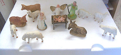 Antique Chalkware & Paper Mache Nativity Set