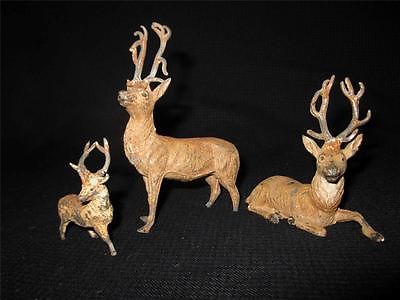ANTIQUE METAL LEAD PUTZ DEER REINDEER FIGURES 3 PC