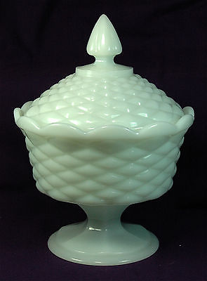 Title (ebay affiliate link): Vintage White Milk Glass Compote in Tufted Diamond Pattern Candy Dish with Lid