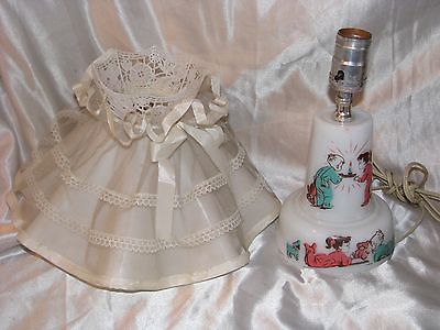1956 TABLE LAMP NIGHT LIGHT KIDS BEDROOM BOY GIRL PAJAMAS MILK GLASS HAZEL ATLAS