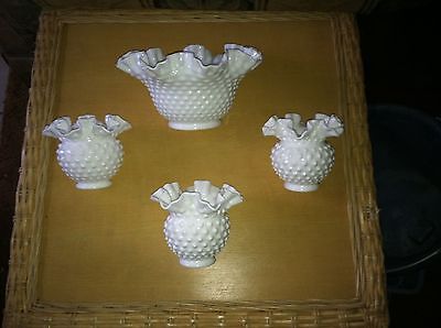 SET OF 4 Fenton Hobnail White Milk Glass Flower Vase BOWEL With Ruffled Rim