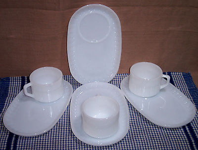 3 vintage modern mid century federal white milk glass snack set cup tray plate