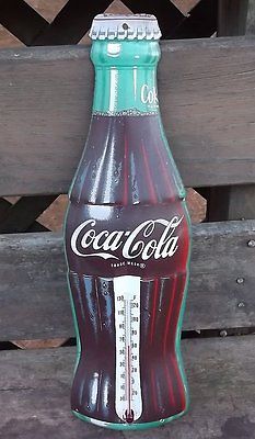 Title (ebay affiliate link): Vintage TCA Large Figural Coca Cola Bottle Tin Metal WALL THERMOMETER Works NR