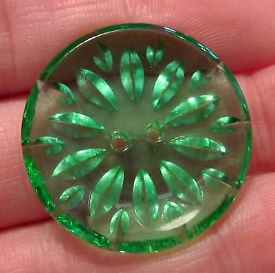 1&1/16" GORGEOUS Antique Vintage GREEN DEPRESSION GLASS BUTTON