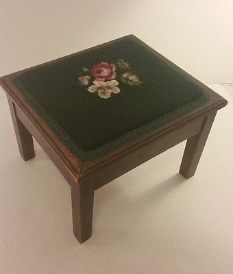 Title (ebay affiliate link): Vintage Wooden Rectangular Floral Needlepoint Foot Stool Rest See Desc