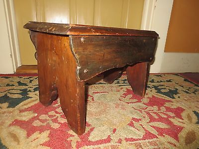 Old Pine Folk Art Stool Charming Details-1940's