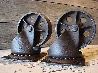 2 Antique Vintage LARGE Cast Iron Swivel Casters Industrial Steampunk 5" Wheels