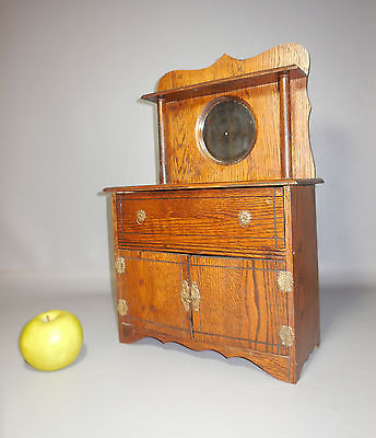 c1890 Miniature Childs Oak Sideboard w/Mirror All Original Has 2 Doors & Drawer
