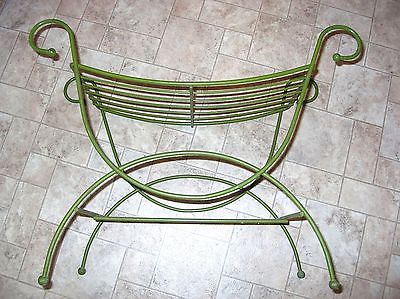 Vintage Wire Mid Century Vanity Stool Hollywood Regency Metal Painted Green