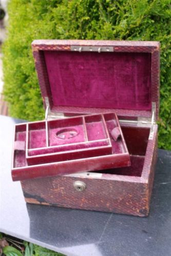 Title (ebay affiliate link): Antique Jewellery Box Bramah Lock Victorian Leather Bound Wooden Box Rustic Chic