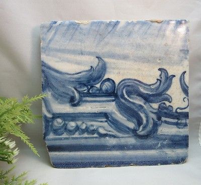 Title (ebay affiliate link): Antique Vtg hand painted blue & white 5 1/2" x 5 1/2" tile. 1/2" thick