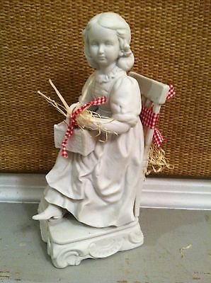Antique PARIAN WARE White Figurine - Girl Seated on Chair with Egg Basket