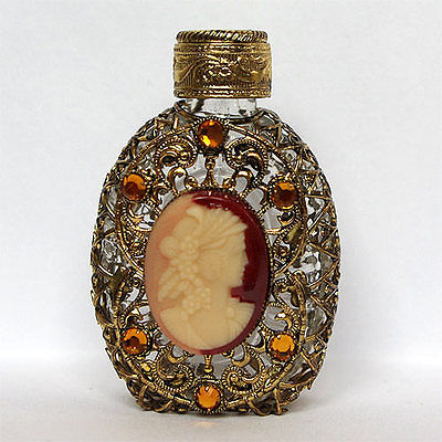 Vintage Czech handmade CAMEO rhinestones glass perfume bottle