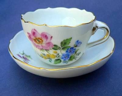 ANTIQUE MEISSEN GERMAN PORCELAIN FLORAL MINI DEMITASSE CUP & SAUCER