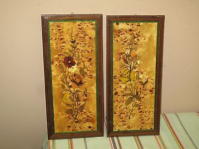 Pair @ 2 Vintage Italian Sorrento Inlaid Inlay Wood Wall Decor 6" x 13" Floral