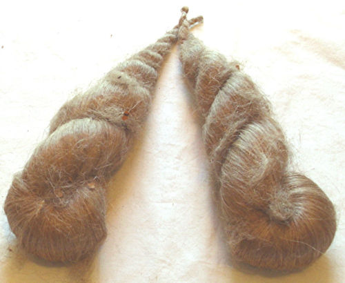 Title (ebay affiliate link): 2 ANTIQUE VTG PRIMITIVE ASH BLOND TWISTED FLAX SKEINS for DECORATION or USE