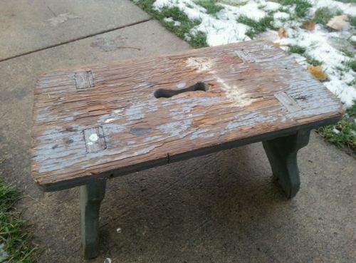 Primitive Blue Wooden Stool Blue Paint Shabby