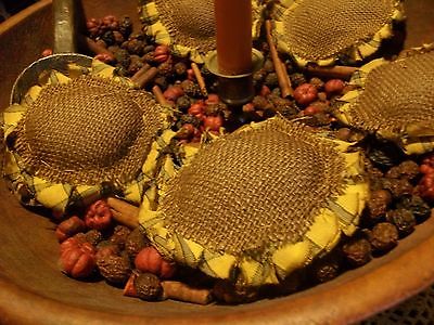 5 HANDMADE PRIMITIVE BURLAP SUNFLOWERS BOWL FILLERS ORNIES