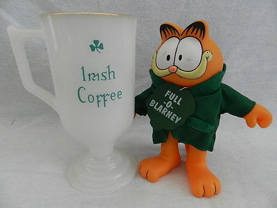 Title (ebay affiliate link): St Patricks Day Garfield the cat "Full of Blarney" Milk Glass Irish Coffee mug