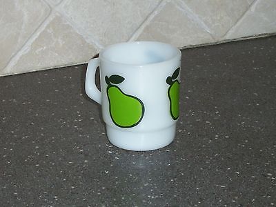 Vintage Hocking Fire King Stackable Milk Glass Fruit Mug Pear VGC