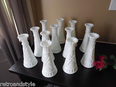 Title (ebay affiliate link): Lot of 12 Anchor Hocking Milk Glass Vases~Weddings, Showers~Stars & Bars