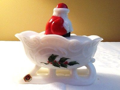 Title (ebay affiliate link): VINTAGE WESTMORELAND SANTA & SLEIGH MILK GLASS W/ORG. FOIL LBL HANDPAINTED MINT
