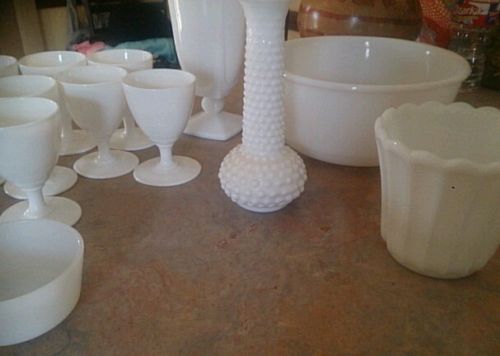 White Milk Glass Vases & Goblet Lot of 15 Pieces Vintage