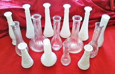 Title (ebay affiliate link): Lot of 15 Bud Vases Milk Glass Hob Nail Clear Various Sizes For Wedding Party!