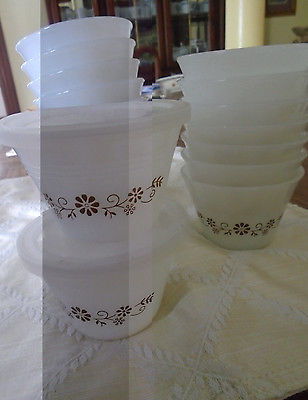 18 Dynaware Custard Cups Milk Glass Brown Daisy Flowers PYR-O-REY/Mexico