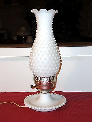 VINTAGE MILK GLASS HOBNAIL HURRICANE BOUDOIR PARLOR LAMP