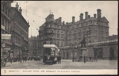 Title (ebay affiliate link): BRADFORD Midland Hotel & Railway Station, tram, 1904 Tuck's vintage postcard