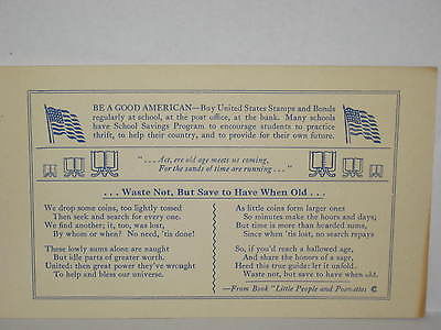 Title (ebay affiliate link): WWII PATRIOTIC POSTCARD " BE A GOOD AMERICAN, BUY STAMPS & BONDS AT SCHOOL " UNU