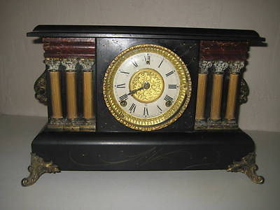 Antique 1910 Wm L Gilbert Black Mantle Clock
