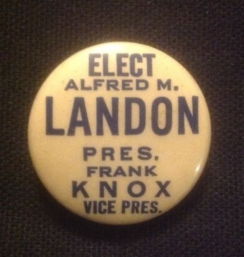 Title (ebay affiliate link): Elect Alfred M. Landon Pres. Frank Knox Vice Pres. Pin Button