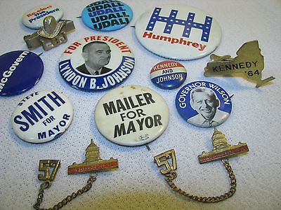 Vintage Political Buttons pins clips lot VARIETY Kennedy Mailer LBJ Humphrey..