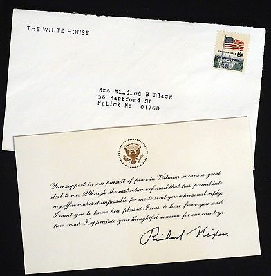Title (ebay affiliate link): PRESIDENT RICHARD M NIXON WHITE HOUSE RESPONSE CARD w/ ENVELOPE lot 187