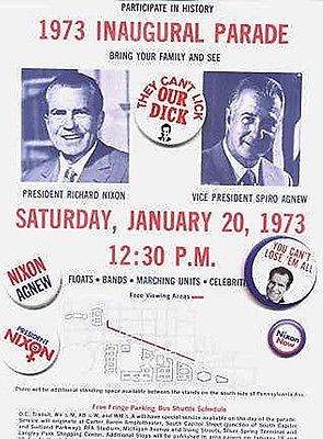 Title (ebay affiliate link): 1973 Inaugural Parade Flyer & 5 Nixon Pinbacks Good condition !!