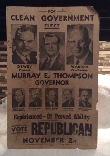 Title (ebay affiliate link): 1944-1948 THOMAS E. DEWEY For President Thomas J. Herbert Governor POSTER