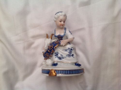 Kpm 4951 Figurine Girl With Goat Blue White Gold Porcelain