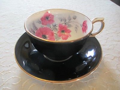 Title (ebay affiliate link): c1950s WINDSOR, Gloss Black Borders Pink Flowers, Tea Cup and Saucer No. 283/60?