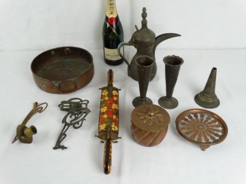 BULK Antique Vintage Metal Wares Inc Copper Art Nouveau Kendi Jam Pan Vase etc