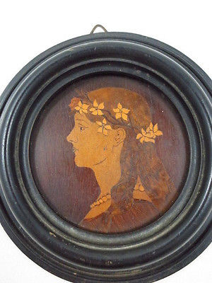 Title (ebay affiliate link): ANTIQUE VICTORIAN ROUND GUTTA PERCHA FRAME INLAID WOOD HAWAIIAN PRINCESS PICTURE