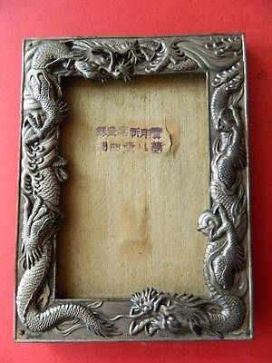 Classic Japanese white Metal Picture Frame Dragon Chasing Pearl c1930s