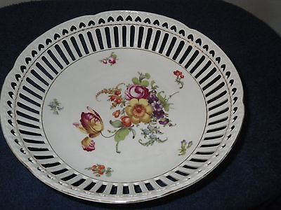 Vintage Reticulated Hand Painted Foral German Porcelain Bowl.