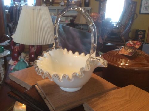 Title (ebay affiliate link): Vintage Fenton Milk Glass Silver crest Ruffled Edge Basket 50's.